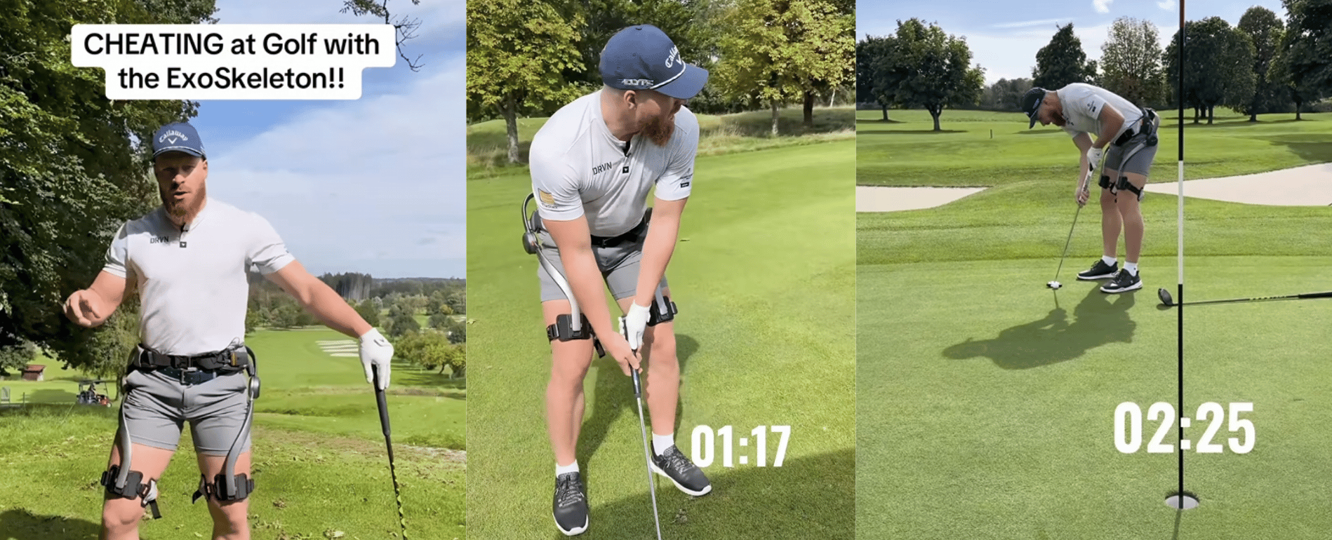 Howdy speedgolf family! You're reading This Week in Speedgolf. You missed me last week. Admit it. Here's what's happening in speedgolf this week. How to add watts, lose style points - Hypershell Exoskeleton Credit: Martin Borgmeier on Instagram Your top story today is a sponsored post. (OMG, Speedgolf Baby sold out!) No, I'm not getting paid to write this, but this week I stumbled across a post by Martin Borgmeier (long drive athlete). This dude is a MOUNTAIN of a man, and we saw him playing...